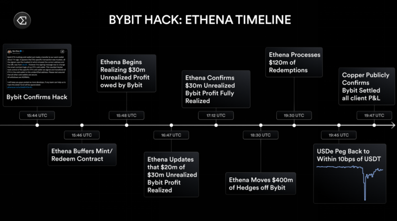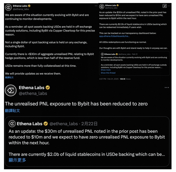这种设计妙就妙在,即使交易所出了事,用户的核心资产也不会直接暴露在风险中。在Bybit黑客事件中,这一模式帮了大忙。Ethena的支持资产完全没有存在Bybit上,避免了直接损失。更重要的是,它还能迅速将价值3000万美元的对冲头寸从Bybit转移至其他平台,整个过程如同“战场换防”——旧的阵地沦陷了,新的防线早已筑好,灵活性让人眼前一亮。这不禁让人思考:如果更多项目也能用这种方式,是不是能少点提心吊胆的日子?
